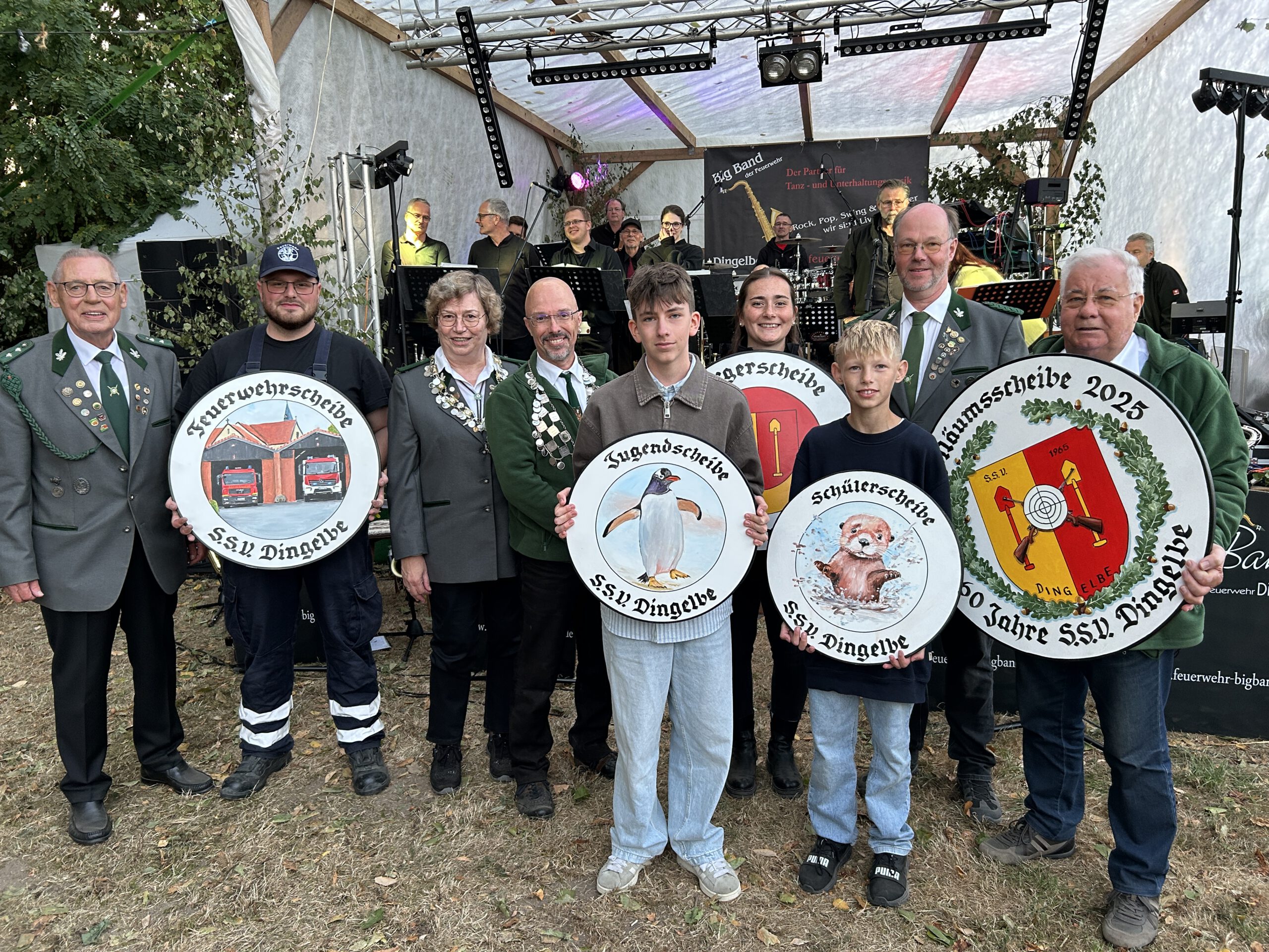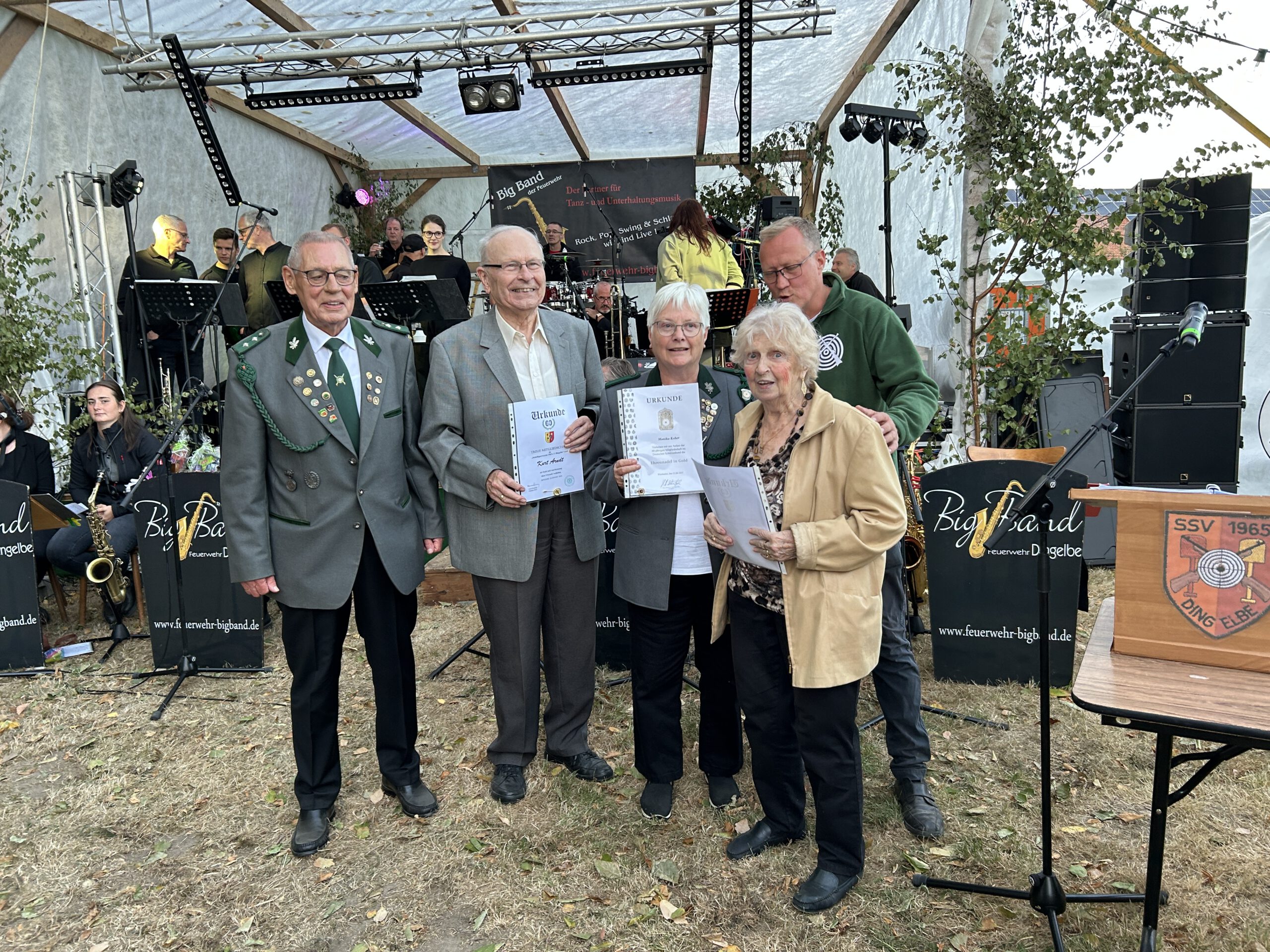 Dingelbe. Bei der gemeinsamen Jubiläumsfeier mit der Big Band der Feuerwehr Dingelbe mit einer „Open-Air-Party“ am 23. August am Schützenhaus standen während des Sommer-konzertes der Big Band beim Kommers auch Ehrungen der Vereinsgründer an. In einem